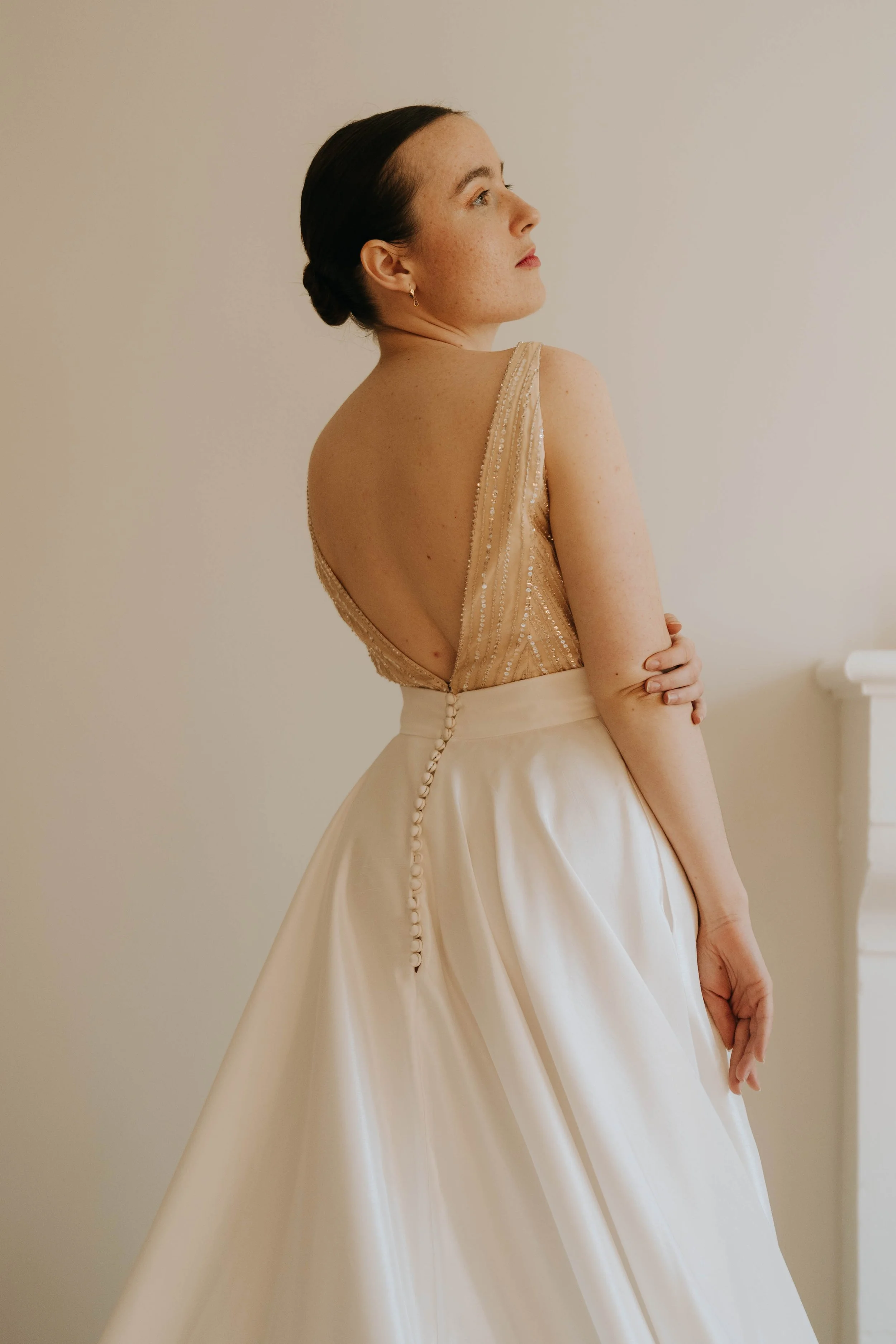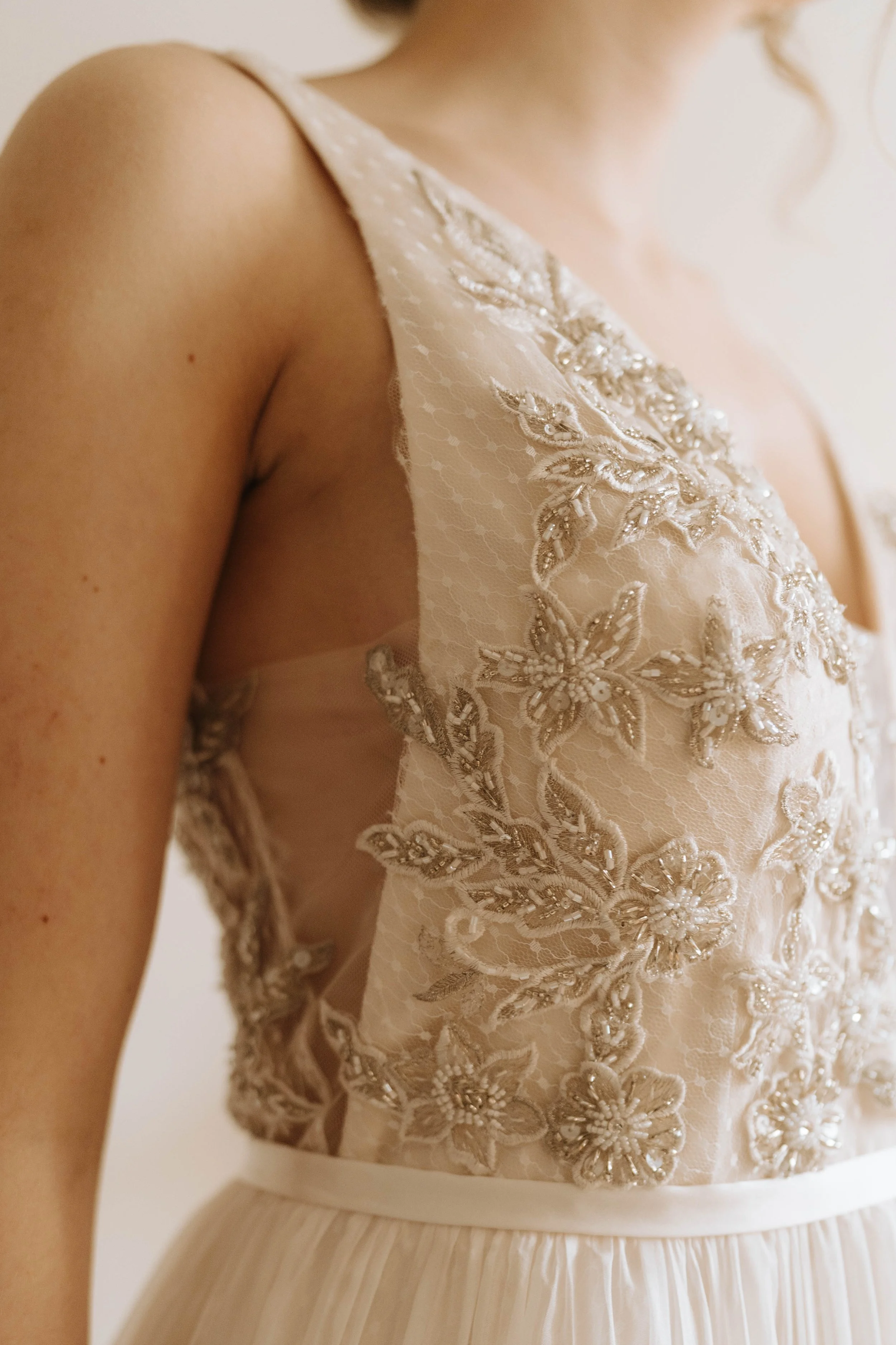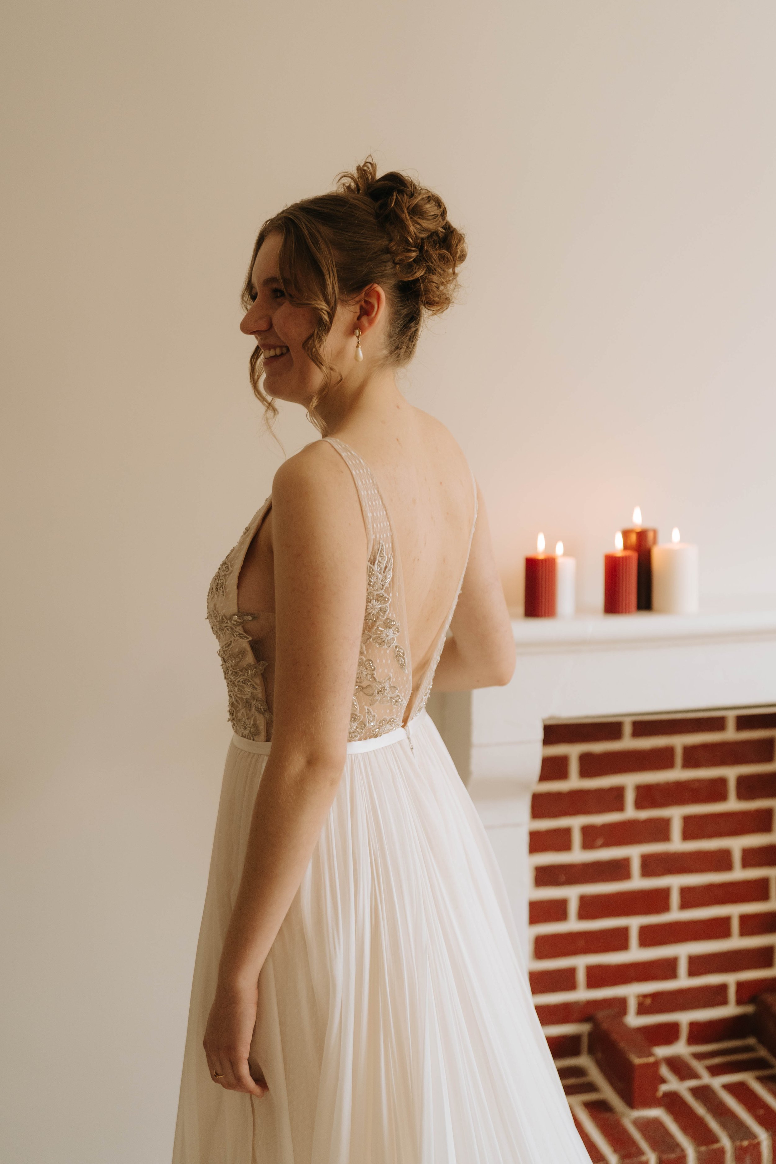 Plus que jamais, votre mariage est l’occasion d’exprimer votre personnalité. Vous avez un côté rock ? C’est le moment de l’assumer. Il se manifestera dans votre robe par une touche de sequins, une superposition de tons transparents nude ou champagne, associée à un décolleté avant ou dos plus osé, pour s’éloigner d’une robe classique. Mais on saura que la mariée, c’est vous.